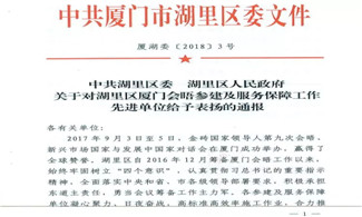 喜訊:我司獲中共湖里區(qū)委、湖里區(qū)人民政府發(fā)文通報表揚(yáng)